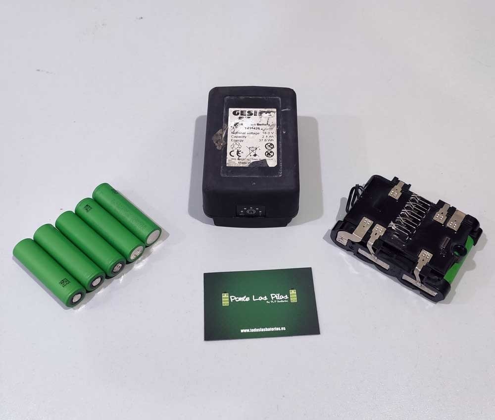 Reacondicionamiento Batería Gesipa 18V de Litio-Ion. Recogemos su batería deteriorada, sustituimos los elementos internos (acumuladores y electrónica) por nuevos de mayores prestaciones. Obteniendo una batería nueva y con mejores prestaciones en su carcasa de origen.