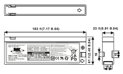 | Nominal Voltage & Capacity | 12V - 2.3Ah C20 |